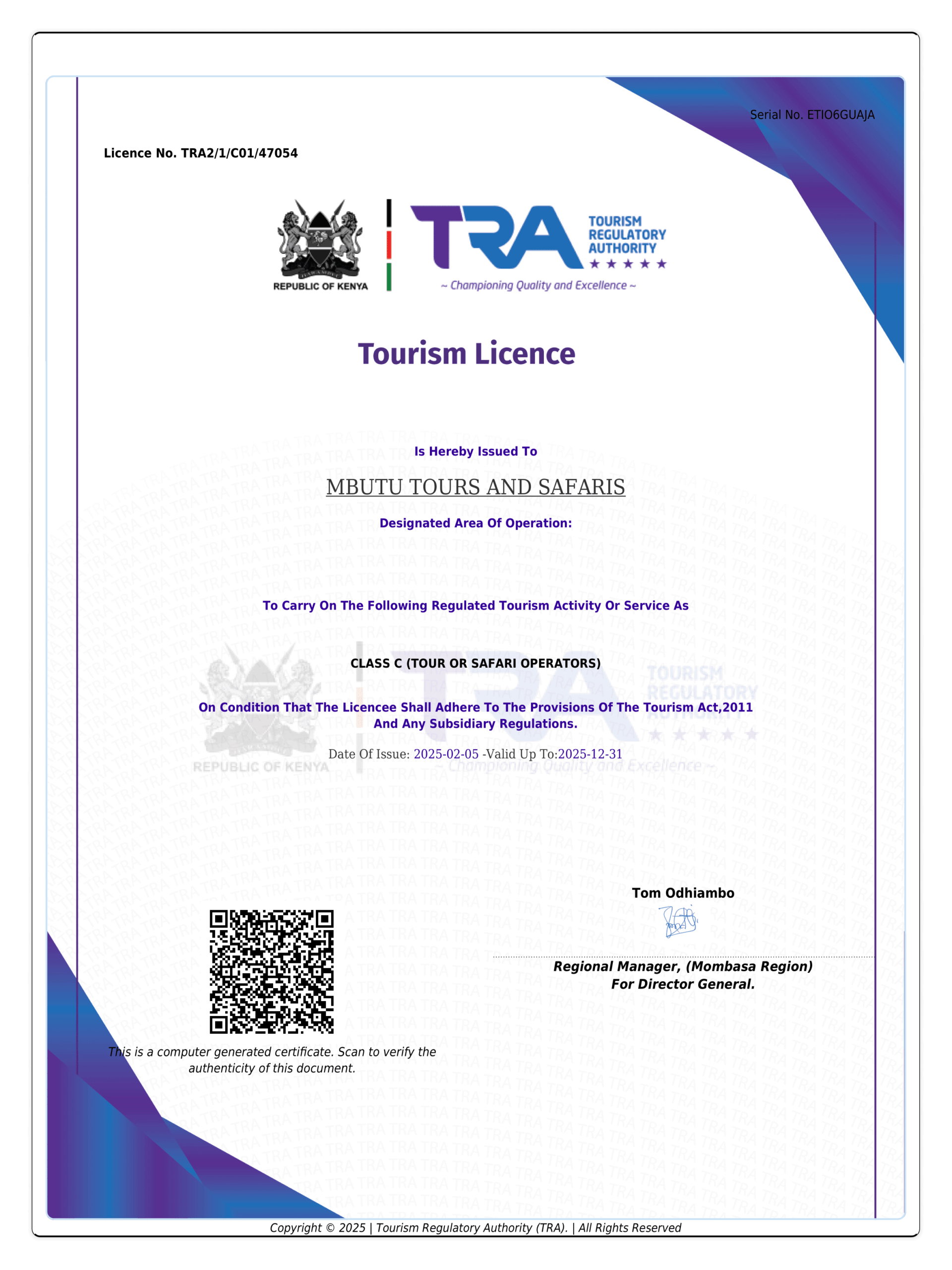 At Mbutu Tours & Safaris, we are passionate about creating extraordinary safari experiences that capture the beauty, diversity, and magic of Kenya. From the vast savannahs of the Maasai Mara to the glittering beaches of Diani and Watamu, we specialize in personalized itineraries that cater to every traveler — whether you’re seeking adventure, romance, or family fun.